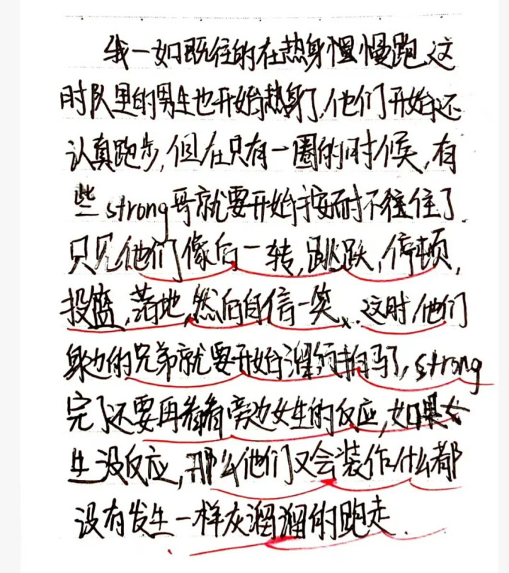 这后面还有一段写小米的“高光时刻”,是夸他作班会报告的时候准备认真,光芒万丈。同学们读完,一起发出善意的起哄声。小米笑着抢过练笔本,哄散了人群。